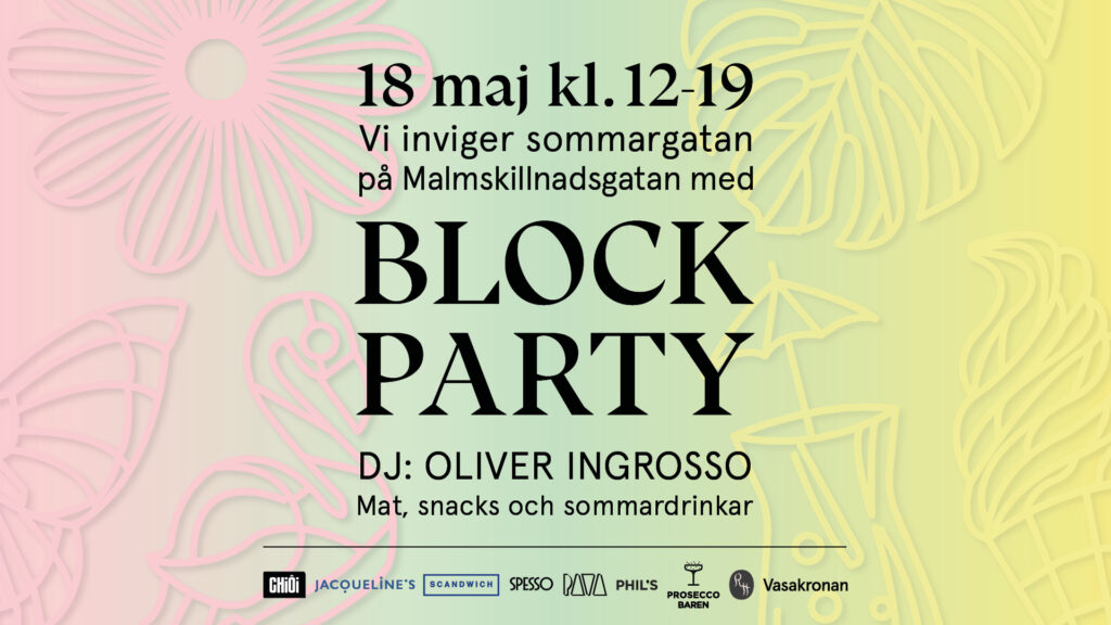 Ladda upp inför konserten med Blockparty på Malmskillnadsgatan den 18 maj! Sommargatan invigs och vad passar inte bättre än god mat, sommardrinkar och grym musik med DJ Oliver Ingrosso? Till eventet